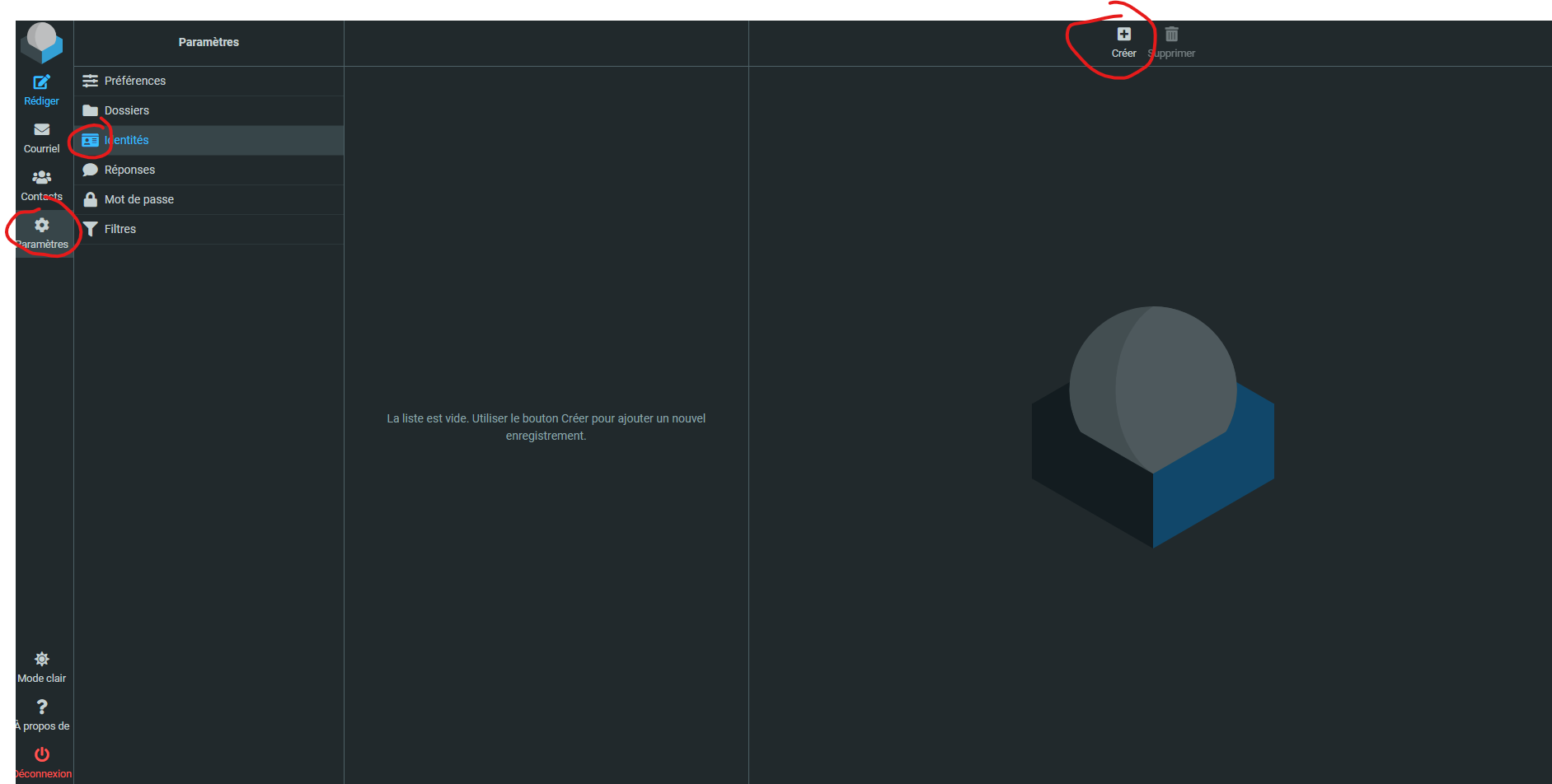Rendez-vous dans « Paramètres » « Identités » et « Créer ». Dans le nom d’affichage indiquer : « Prénom et nom – Maison d’Enfants », dans l’email, votre adresse email. Vous devrez aussi remettre votre signature.
